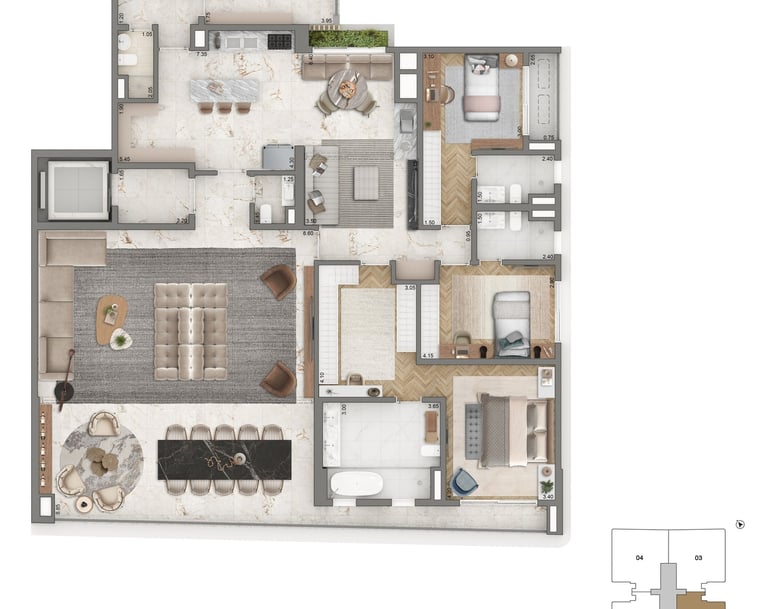 Planta Padrão | 251m² | 4 Suítes + Sala Íntima + Sala de almoço
