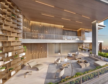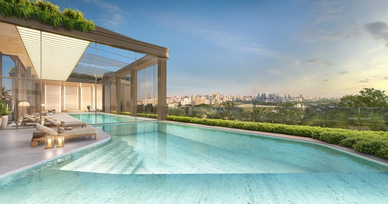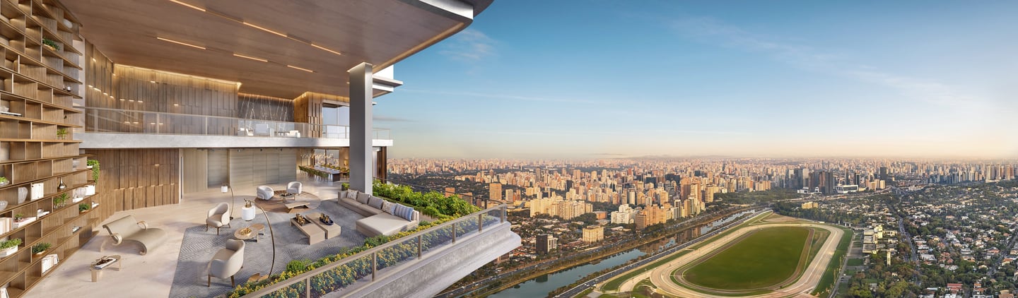 Unidades que variam de 348 a 411,50 m², e coberturas que transmitem a sensação de casas flutuantes, variando de 708 e 710 m².