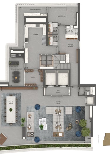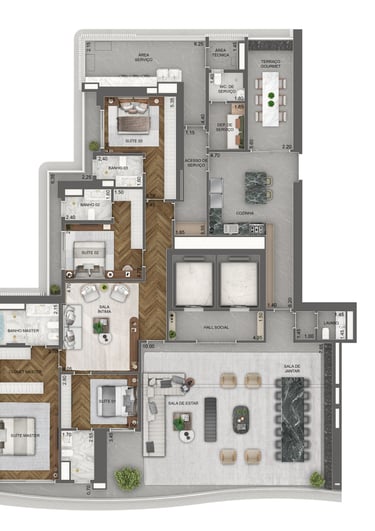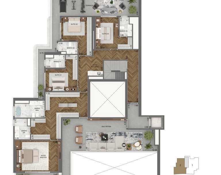 Planta Padrão 346 m² | 4 suítes | sala intima