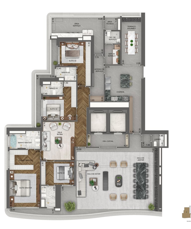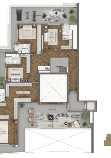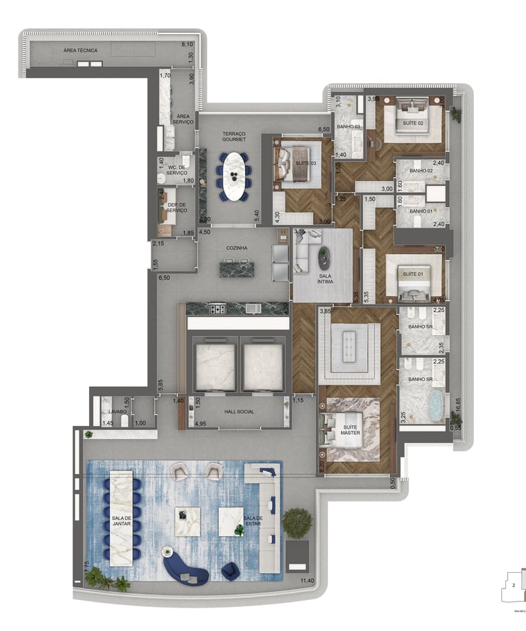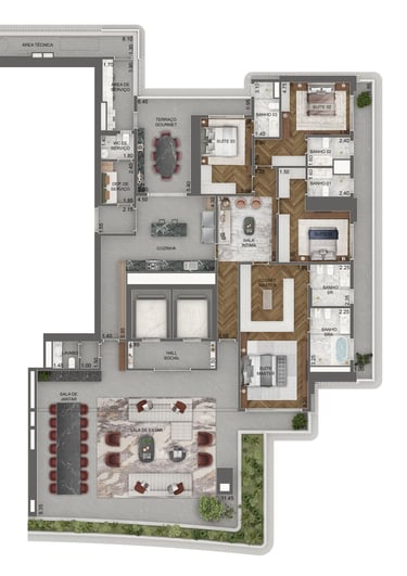 Planta Padrão 411 m² | 4 suítes | sala intima