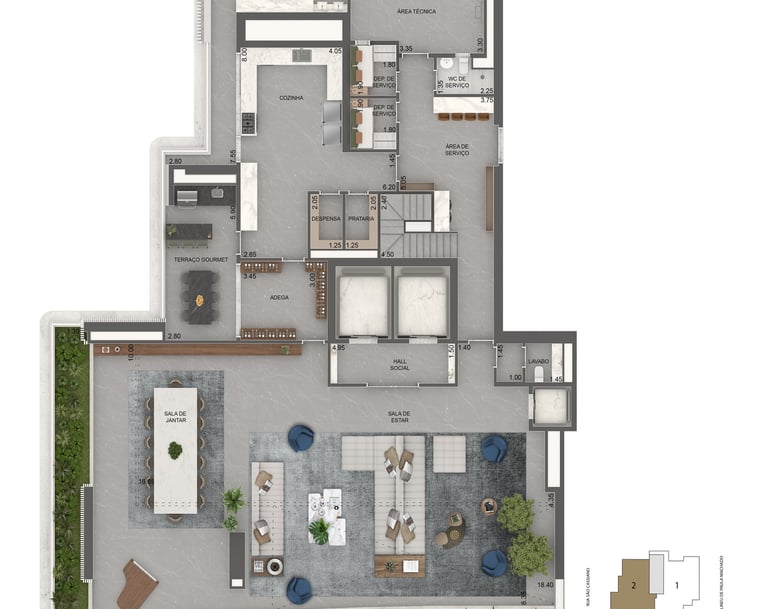 Planta 708 m² | 4 suítes | piso inferior